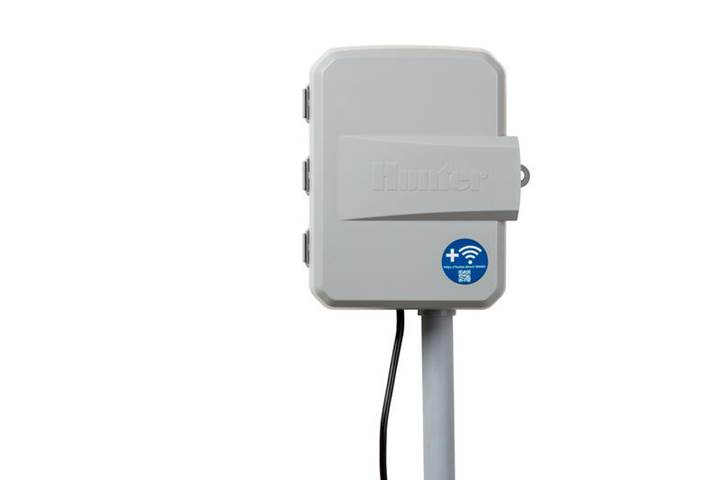 Controlador de irrigação externo Hunter X2-601-E 220V com 6 setores, compatível com módulo Wi-Fi Hydrawise, programação inteligente com ajuste climático, proteção contra curto-circuito e gerenciamento remoto.