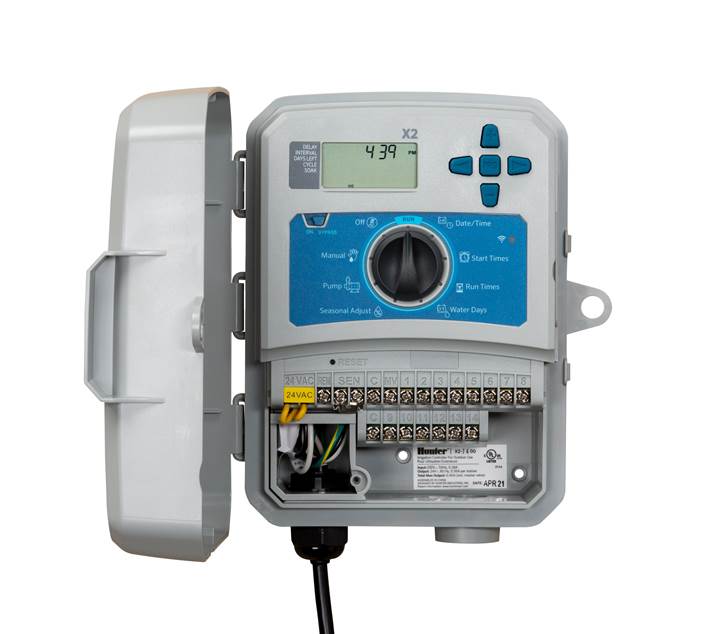 Programador Hunter X2-801-E com 8 setores, compatível com Wi-Fi Hydrawise®, controle inteligente, economia de água e instalação externa 220V.Programador Hunter X2-801-E com 8 setores, compatível com Wi-Fi Hydrawise®, controle inteligente, economia de água