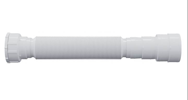 Sifão Sanfonado Extensivo 700mm Branco, fabricado em polipropileno resistente. Ajustável, fácil de instalar e ideal para pias, lavatórios e instalações hidráulicas em geral.
