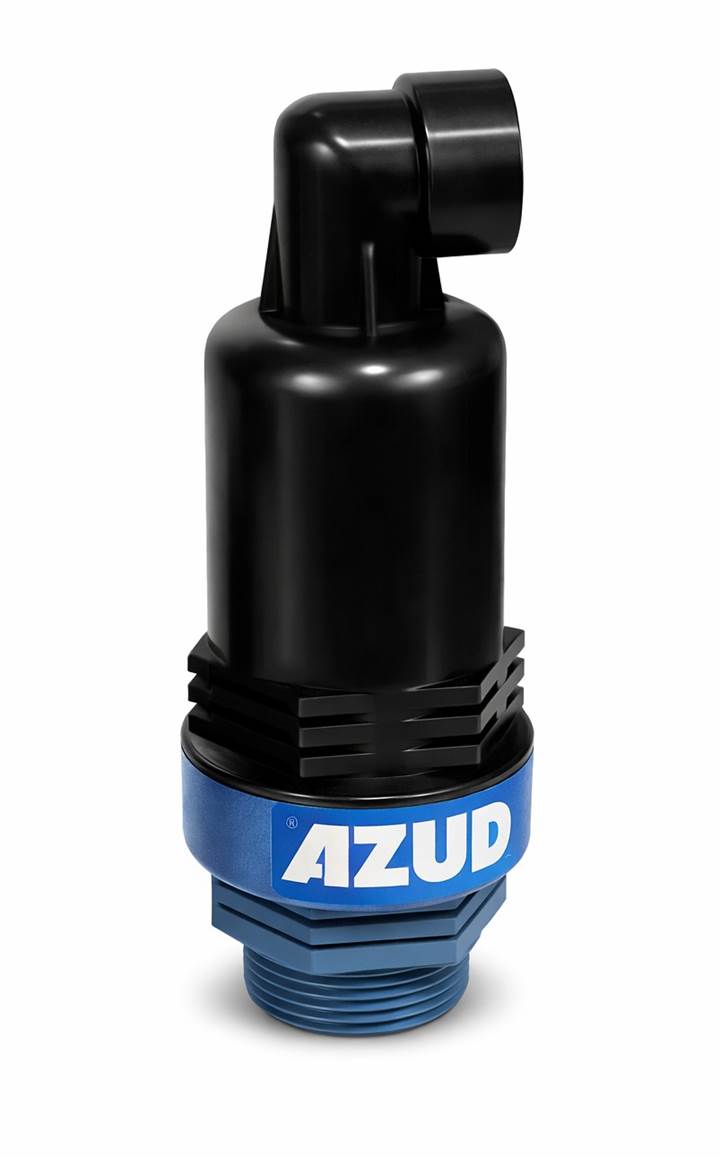 Válvula ventosa triplo efeito AZUD DN2, para alívio e admissão de ar em tubulações, com vazão de até 1000 m³/h e pressão de trabalho até 16 bar.